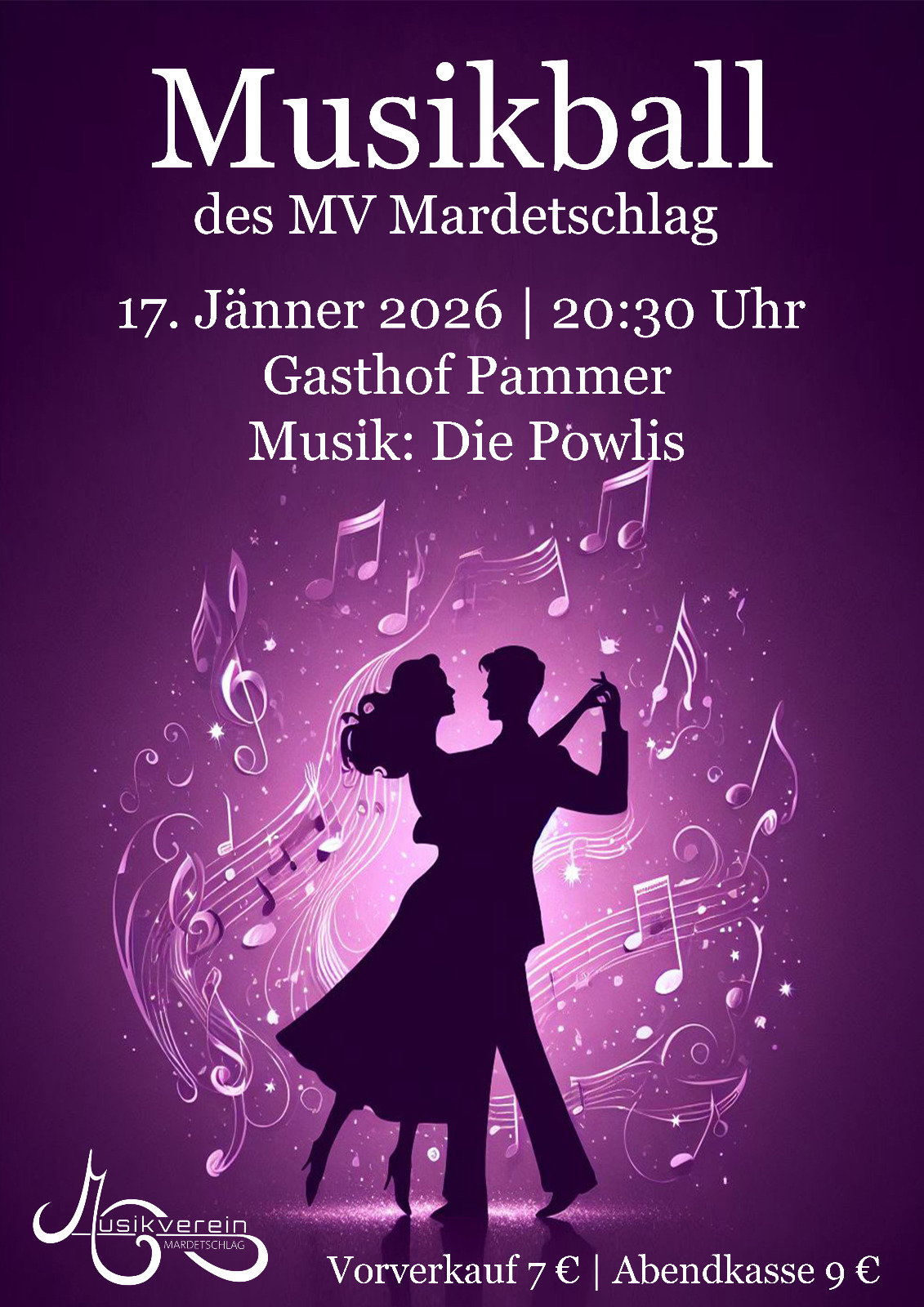 17. Januar 2026 @ 20:30 Musikerball des MV Mardetschlag Gasthof Pammer Mardetschlag 31, Mardetschlag, Austria